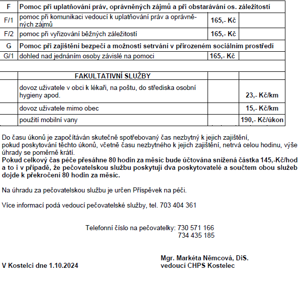 Telefon pečovatelek: 730 571 166, 734 435 185