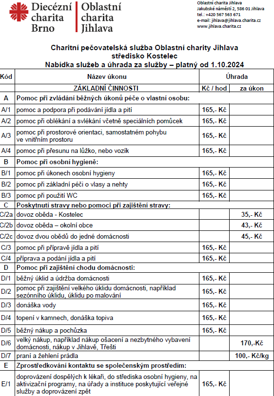 - Charitní pečovatelská služba Kostelec, Kostelec 101, 588 61 Kostelec u Jihlavy, tel. 730 571 166 a 734 435 185, e-mail: kostelec@jihlava.charita.cz,