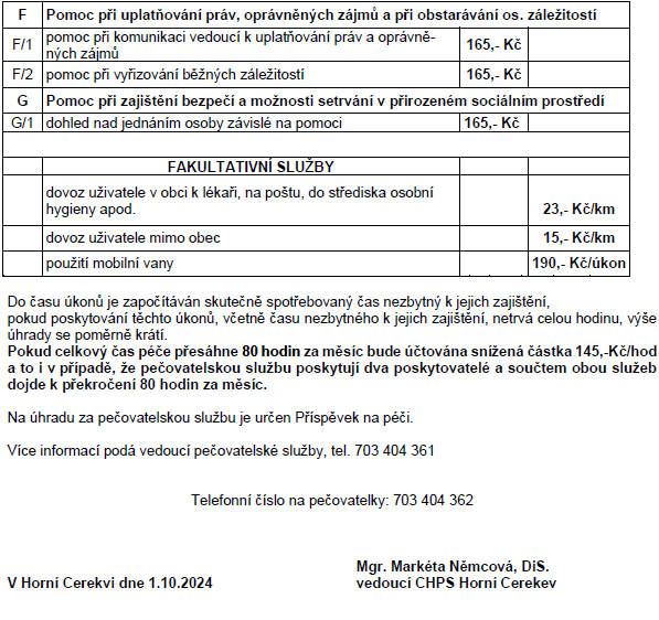 - Nákupem se rozumí denní nákup potravin a věcí osobní potřeby v obvyklém množství. Nákup se provádí v prodejnách v Horní Cerekvi, dle přání uživatele. Nákup je účtován dle skutečně
