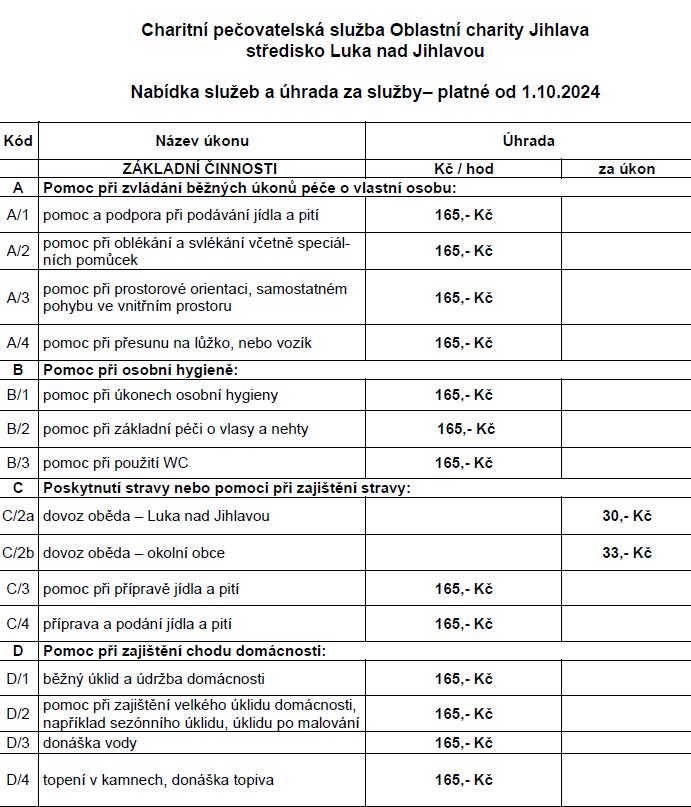 Charitní pečovatelská služba Oblastní charity Jihlava – středisko Luka nad Jihlavou