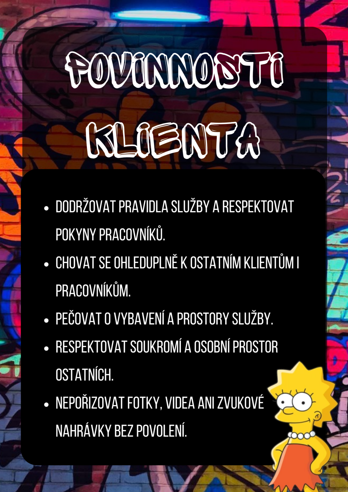 - chovat se ohleduplně k ostatním klientům i k pracovníkům;