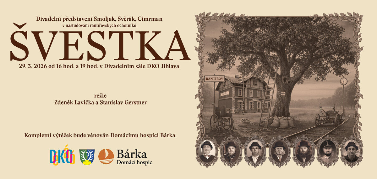 Rantířovští ochotníci a DKO Jihlava potřetí pořádají benefiční divadelní vystoupení pro Bárku – domácí hospic Oblastní charity Jihlava. V neděli 29. března uvedou v divadelním sále hru Divadla Járy Cimrmana Švestka. Výtěžek bude využit na nevyhnutelnou rekonstrukci sídla hospice.