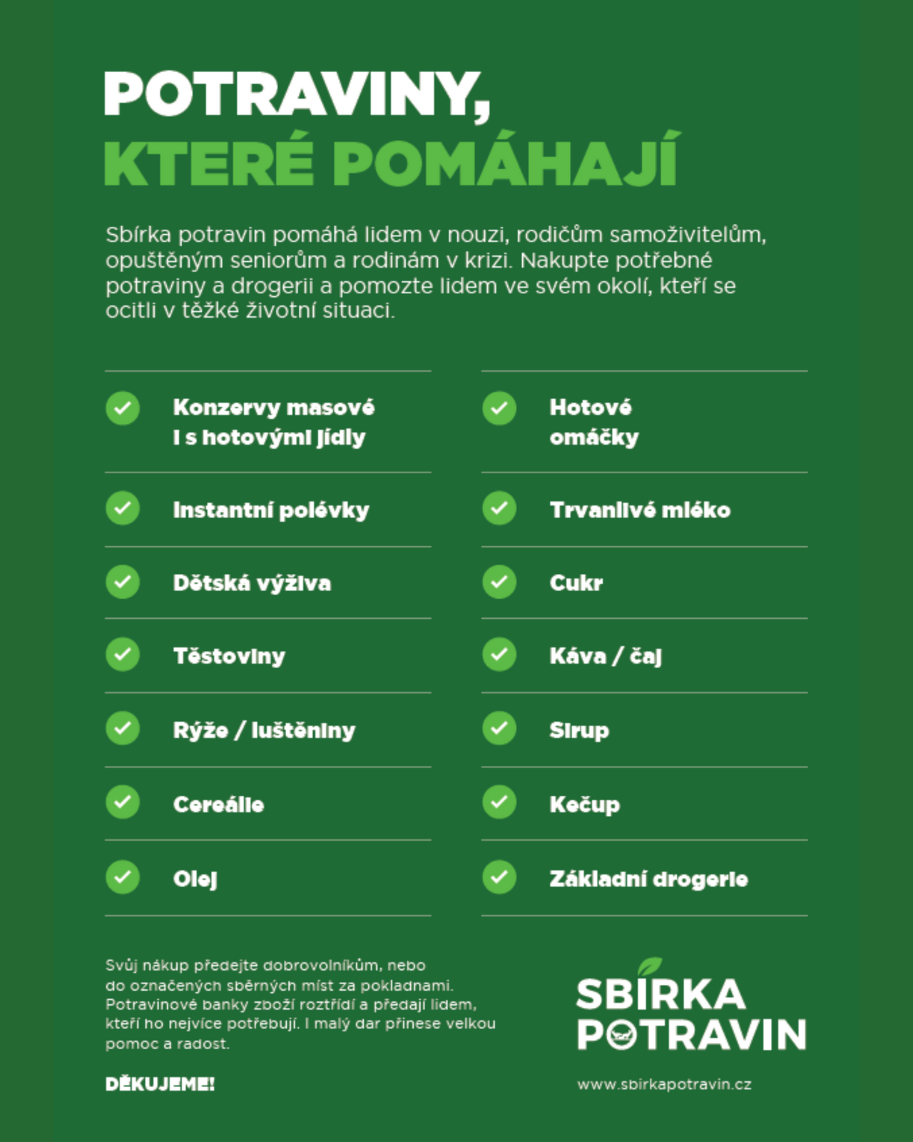 Obecné informace o Sbírce potravin (více na www.sbirkapotravin.cz)